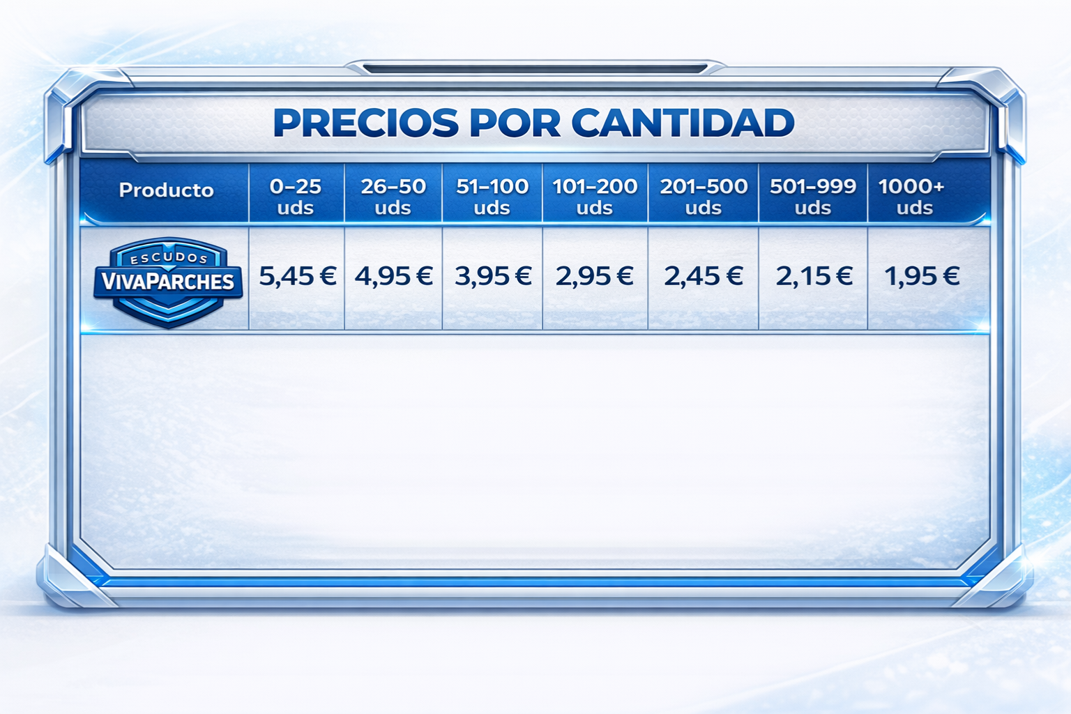 Imprime tus diseños con DTF UV Textil Escudos, ideal para logotipos y etiquetas con efecto relieve 3D de alta calidad. Prepara tus archivos en pliegos de 58 cm de ancho (si excede, se ajustará sin previo aviso) en formato PNG o PDF con fondo transparente. Tecnología UV para un acabado resistente, brillante y profesional sobre plásticos, metales, vidrio y más