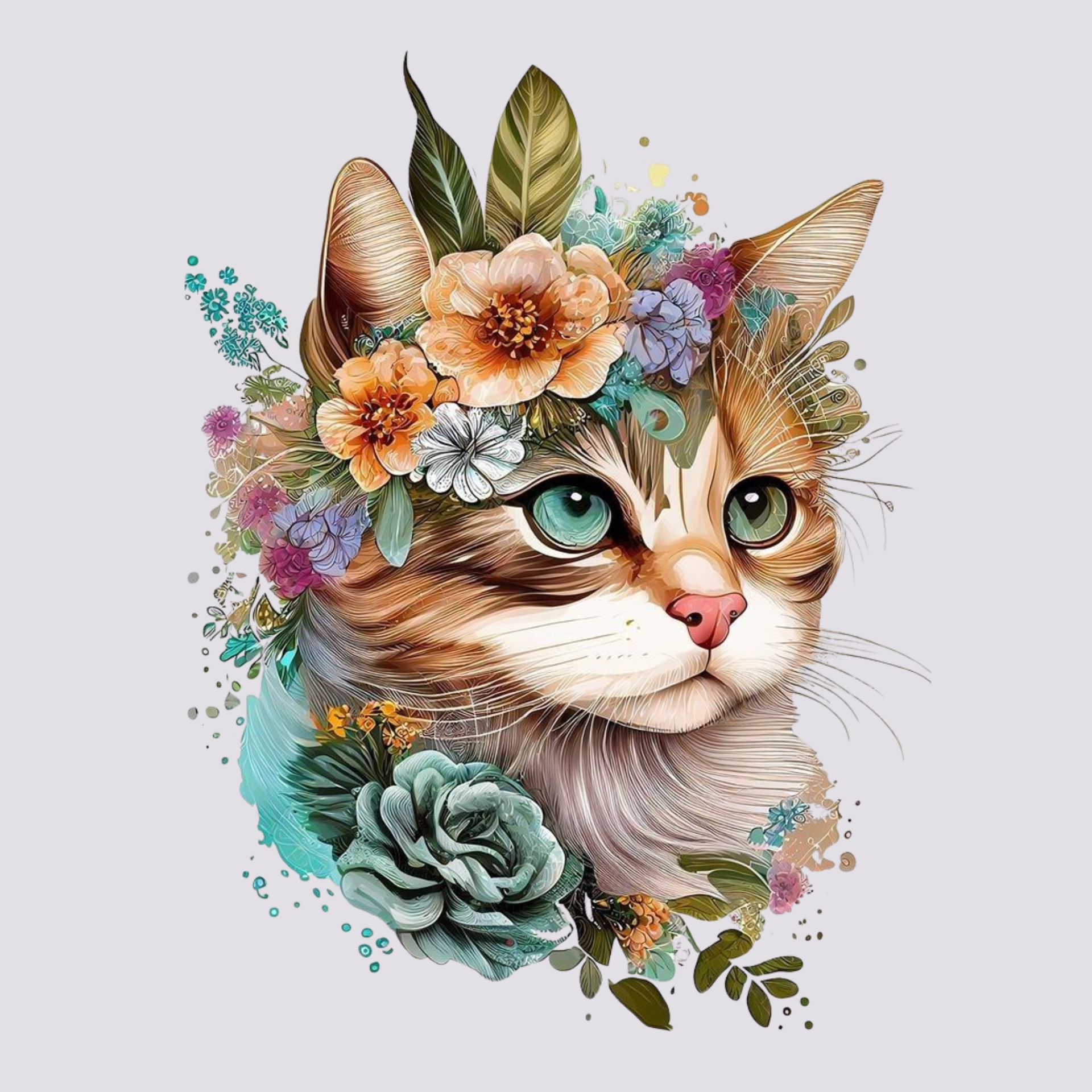 Pliego Digital Mascotas - Gato con Flores - Viva DTF